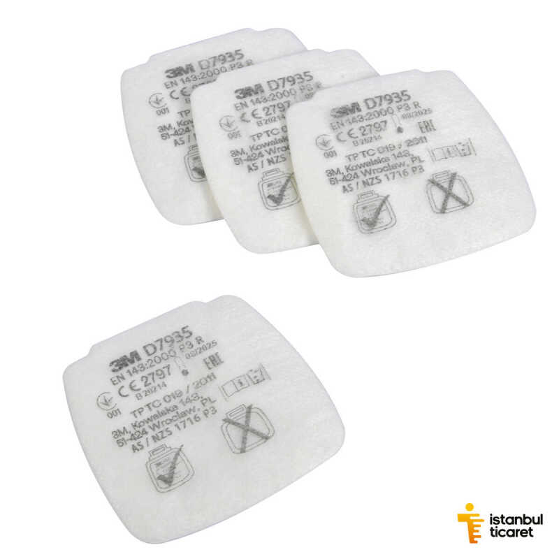 3M ™ Secure Click ™ Değiştirilebilir Partikül Filtresi P3 R, D7935, belirli katı ve sıvı partikülleri içeren ortamlar için CE onaylıdır.