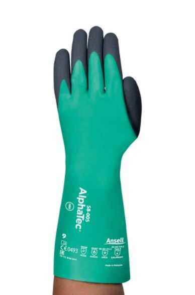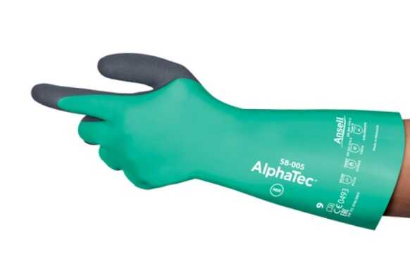 AlphaTec 58-005, yeni ENISO 374:2016 uyarınca ‘Tip A’ kimyasal korumasına sahiptir.