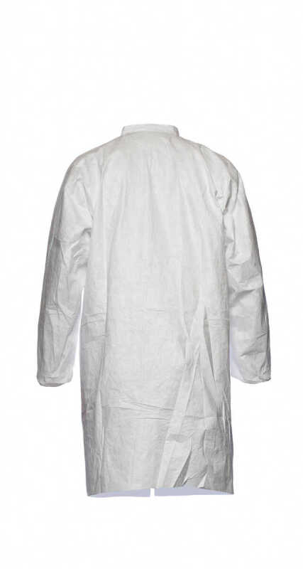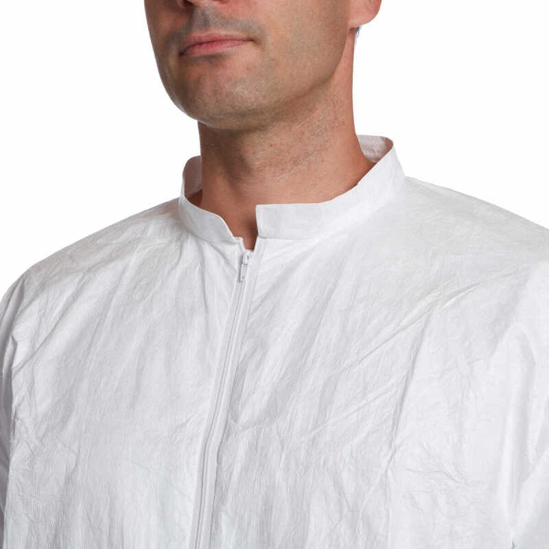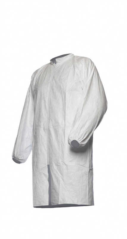 DuPont™ Tyvek® 500 Labcoat, fermuarlı ve cepli model PL309. Yakalı labcoat, beyaz renkte ve SM ila 2XL boyutlarında mevcuttur.