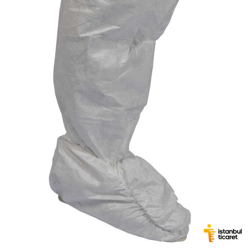 DuPont™ Tyvek® 500 ayakkabı galoşu modeli POS0. Ayakkabı galoşu beyaz ve tek beden (38 cm uzunluğunda) olarak mevcuttur. Elastik ayak bileği.