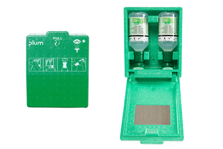 Duvara montajlı bu göz duşu istasyonu 2 adet 500 ml plum göz solüsyonu içerir.